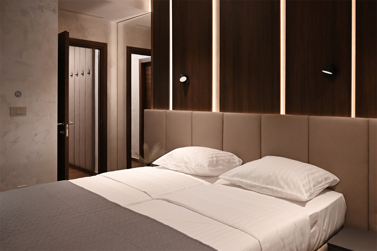 This luxurious family room for the whole family or a larger group is designed for perfect comfort and relaxation. The interior of this room, which exudes elegance, with a special emphasis on the quality of the workmanship of small details and luxurious ambient lighting, is the ideal choice for your vacation.